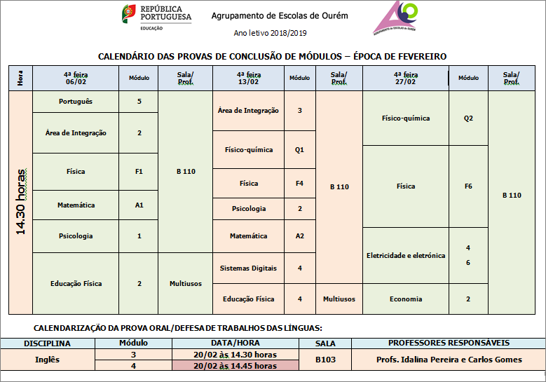 Calendário de Exames de Recuperação de Módulos - Fevereiro