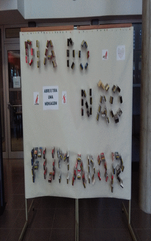 Recolhidas as frases alusivas ao tema, elaboradas pelos elementos da equipa do PES, pelo grupo de biologia e com a participação de alunos (de Tutoria do 8ºB, PS16 e 6ºA), fizeram-se rolinhos que foram colocados em maços de tabaco. Estes “cigarros da palavra” foram oferecidos a todos os elementos da comunidade escolar.