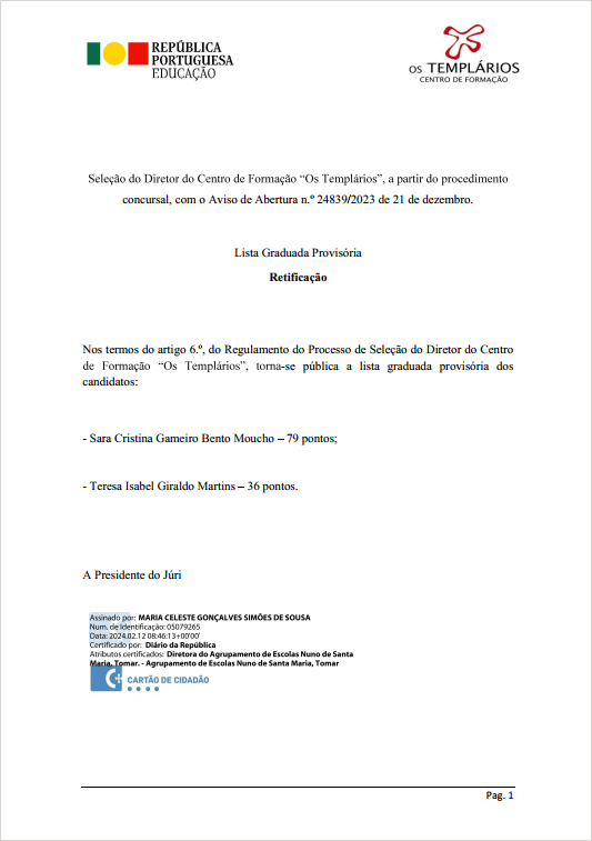 Lista Graduada Provisória Procedimento Concursal Para Diretora CFAE