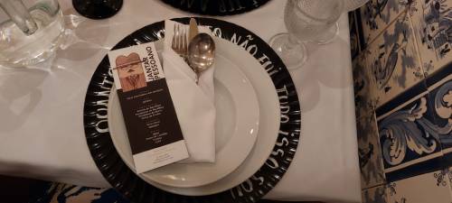 Para melhor saborear este cardápio, o espaço que acolheu o evento encheu-se de motivos alusivos à obra e às vivências pessoanas, na maioria criados propositadamente para retratar o legado desta figura ímpar da cultura e literatura portuguesas do século XX. De facto, para o efeito, foram decorados pratos marcadores de lugar, onde o fundo negro fez sobressair a inscrição, em tom de prata, de versos da poesia ortónima ou heterónima de Pessoa.